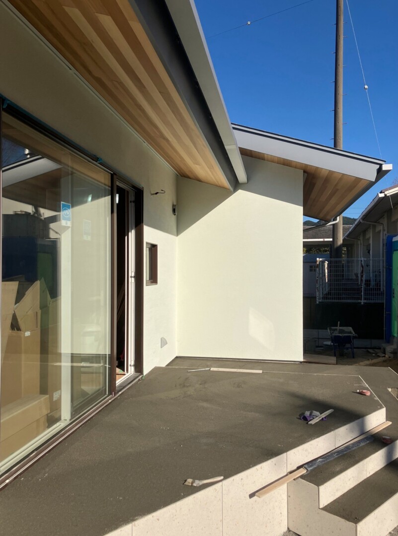 佐川町までアクセスも良くなっているので、以前と 比べ、現場へ通うにも随分と楽になりました。 N邸は、順調に進んでいます。 外部は、タイルデッキの施工中です。 高低差を設けて正解でした(笑) 内部は、木工……