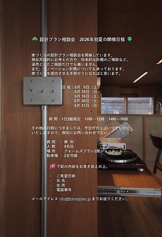 日々、不安なニュースが流れてきますが、とにかく 気持ちだけは前を向いていきましょう! ということで、初夏(早い?)の設計プラン相談会 の開催予定日をお伝えします。 最近は、以前よりも新築とリノベを比較される方……
