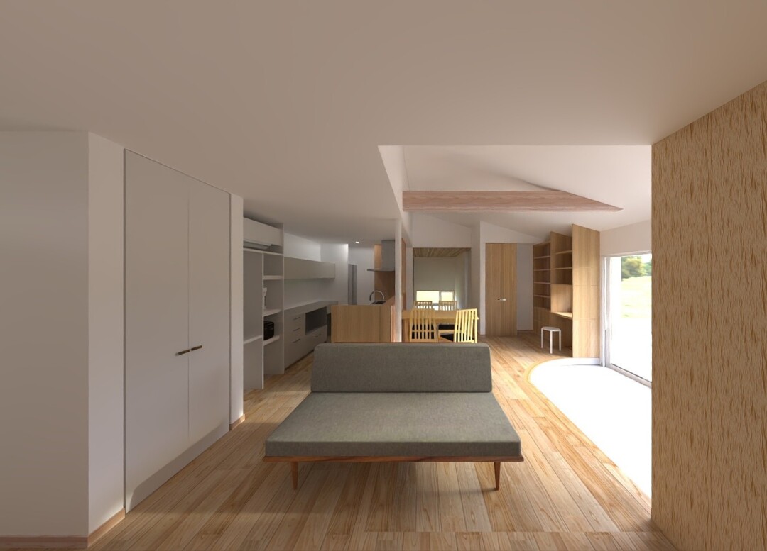 深い軒から柔らかな日差しが入る計画です。