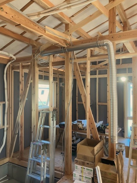 これから壁の断熱材を充填していきます。
