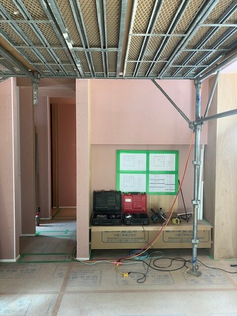 いの町I邸新築工事の進捗状況です。 木工事も今週末で終わり、週明けからクロス工事から 器具付けへと移っていきます。 グラフテクトのキッチンも設置しました。 本体カラーは、初めての「トープ」。 ア……